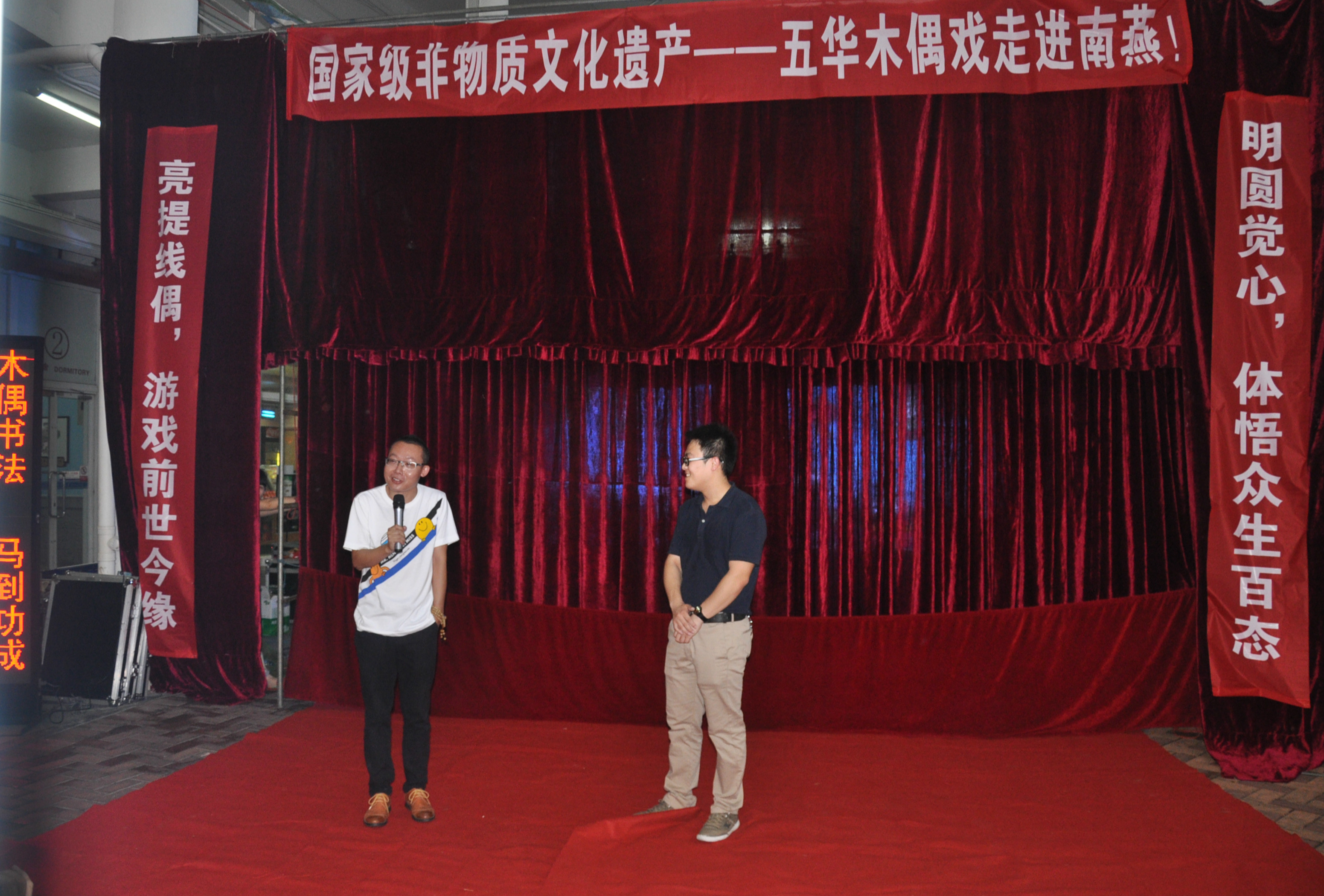 为了筹办本次演出,人文学院发起了为期一个月的经费众筹活动,北大校友及社会各界人士纷纷出力,为南燕师生提供了这次感受中国传统民间艺术的机会。校友明亮作为筹资者之一,在演出开始前代表发言,他表示,对这次活动给予大力支持的原因有两个:第一,自己对儿时看过的木偶戏有着特殊的感情,木偶戏承载着他童年的记忆,希望师生们也能感受到这份乐趣;第二,中国有着值得我们骄傲的传统文化,希望让更多的人了解传统民间文化并使其得到传承与发扬。