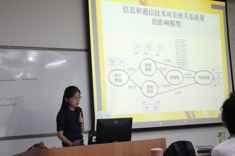 最后,叶老师再次将视角引入到了亲密关系的探讨之中,结合国外的经验研究,展示了亲密关系的建构过程和各种模型构造,这些丰富的信息也引发了大家对亲密关系与社会网络的思考。在讲座最后,叶老师与现场观众分享了自己研究的一些经验,她认为,研究问题固然重要,但还是会受到数据的影响。为了让同学们对具体研究方法有更深一步的了解,叶老师也推荐了一些文献。
