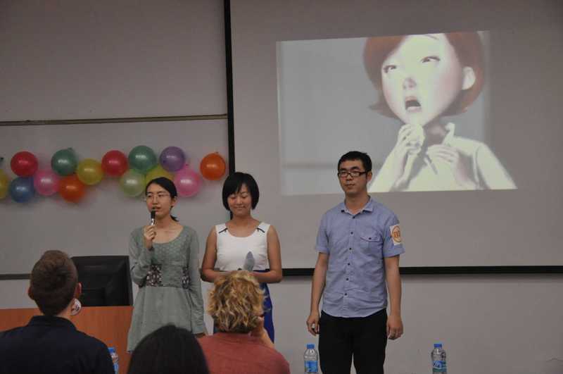 整场比赛共有7个团队参赛,每队1—5人不等。比赛分为自由配音展示赛、规定配音PK赛、创意配音加分赛三个环节,累计总分评出高低。三个环节的难度依次递增,可谓不断的给选手“出难题”。参赛选手精彩的配音表现、过硬的英语实力、有趣的创意使得赛场上掌声阵阵、欢笑不断。