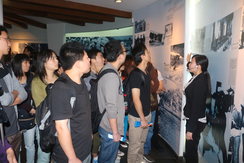 同学们首先参观了一层黄埔军校史迹展和黄埔群英油画馆,黄埔军校史迹展通过200多张照片,100多件文物,以“黄埔岁月”、“军校变迁”、“情系黄埔”三个部分,生动再现了黄埔军校的辉煌,和黄埔师生英勇奋战,不怕牺牲,在统一广东、建立广东革命根据地、北伐、抗日战争中所立下的彪炳青史的赫赫战功。