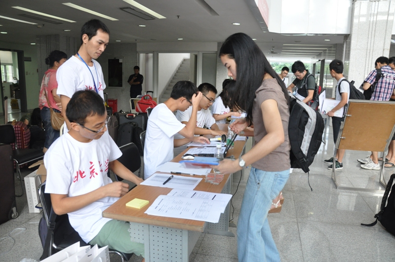 整个迎新报到的流程分为:持入学通知书报到,交身份证复印件,签到、核对信息,领取迎新活动文件夹,办理缴费等其他手续,最后到宿舍区办理入住手续。报到处的志愿者们细心地为新同学们办理着各项手续,耐心、热情地解答着同学们提出的相关问题,并按学号将提前准备好的资料夹发给他们,里面有详细的入学安排、新生指导手册,这些资料可以让新生尽快地熟悉北大深研院的环境,以帮助他们尽快适应新的研究生生活。整个过程显得有条不紊、秩序井然。负责送新生入住的同学不怕苦、不怕累顶着烈日、拖着行李不停地往返于宿舍楼与H栋之间。
