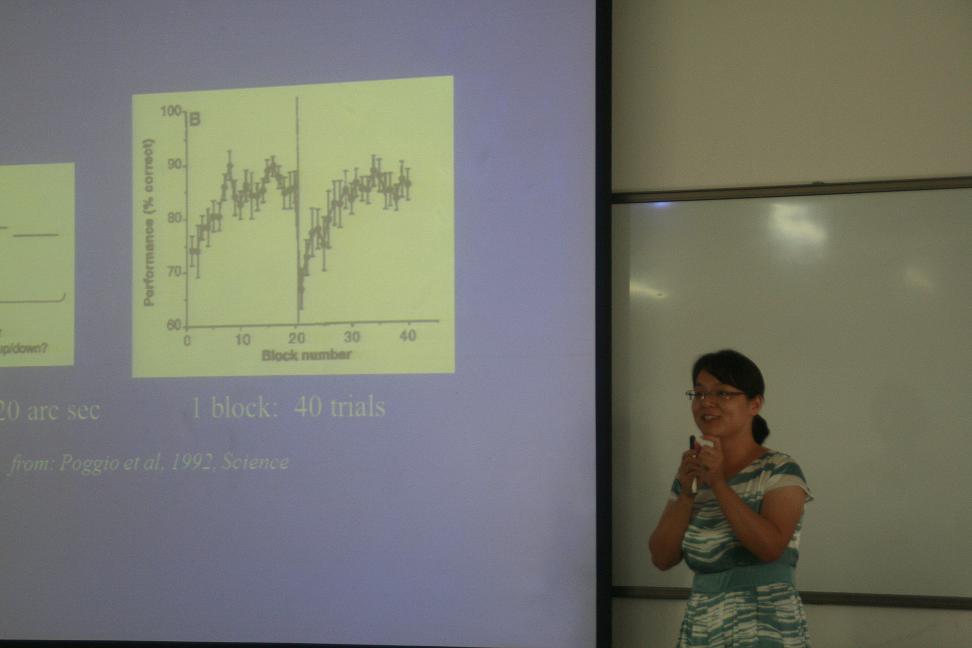 丁教授首先向大家介绍了知觉学习领域的发展脉络和经典研究,并通过猫的视觉剥夺等有趣的实验,揭示了知觉学习与大脑发育的微妙关系。由此引出了知觉学习研究的重大意义——为成熟大脑(尤其是低级皮层)可塑性提供研究无创伤的途径。“大脑半球切除”和“幻肢”两段有趣的视频,让大家感受到了大脑神奇的可塑性。最后丁教授为大家介绍了自己实验室的一些研究成果,并提出了一个知觉学习的模型。