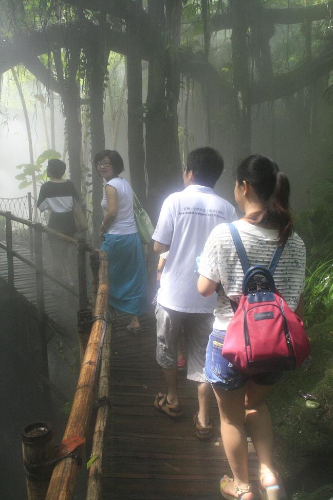在公园内,除了可以领略各种热带森林风情,欣赏热带水族,还可以参观古朴精致的主题乐园。同学们在园子里观赏植物,参观各种颇有风格的陶艺作品,最后来到拓展中心,参加各种素质拓展。在活动中,同学们充分体现出北大学子坚强勇敢的卓越品质,相互扶助合作,完成了一个个拓展任务。