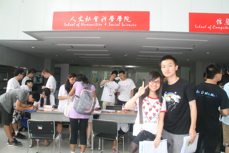 金风送爽,又是一年迎新时,8月22日,南国燕园在鹏程大运会一片喜庆祥和的氛围中迎来了11级新同学。为了支持迎新工作,人文社会科学学院10级暑期留校、提前返校的近二十名同学积极主动地担当起了志愿者协助迎新。传播学专业10级本已离深的四名同学还不辞辛劳专程返回深研院参加了迎新活动,实为可敬!