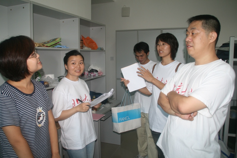 下午3点半到6点半,人文学院的于长江老师、艾彦老师、潘乐文老师等人走访了新生宿舍,了解新生的住宿情况。老师们挨个走访了每个学生宿舍,主要询问新生的入住情况,诸如宿舍的水电、空调、插座等设施是否完好、热水器是否能用等。其次还了解了新生对宿舍的感受、对这里天气的适应情况。住在高层的几个宿舍阳台上的风景煞是美丽,新同学都表示非常满意。由于今年新生入住的宿舍是新楼,老师们还特别考察了可能出现的一些问题。诸如老师们发现有些宿舍的晾衣绳较高,衣服容易被风吹走,每走访一个宿舍都会提醒同学们要小心晾晒。同时叮嘱大家认真阅读这几天的日程安排,确保按时参加各项迎新活动。最后对于有些暂时不能解决的问题也都一一进行了记录,准备及时汇报给有关部门。此外,老师们还耐心解答了新生们的一些疑问。