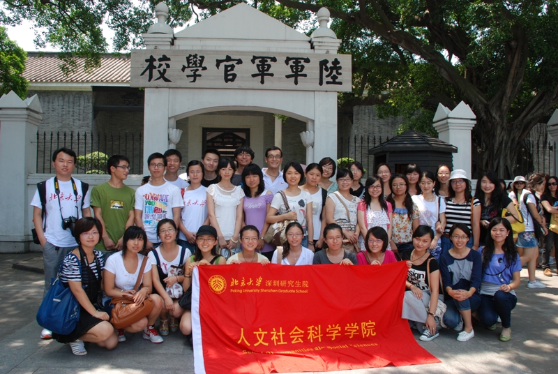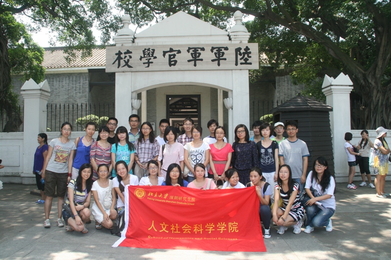 参观结束,同学们在黄埔军校校门前合影,这画面不禁令人想到:北大精神与黄埔精神有着何其多的共同之处:在北大的百年历史上,无时不刻不与中华民族荣辱与共,英才辈出的北大人在各个领域砥柱中流。北大人“仰望星空,脚踏实地”的情怀也与黄埔“登高望远海,立马定中原”的胸襟不谋而合,这些相似之处都使本次参观变得更加意义深远。