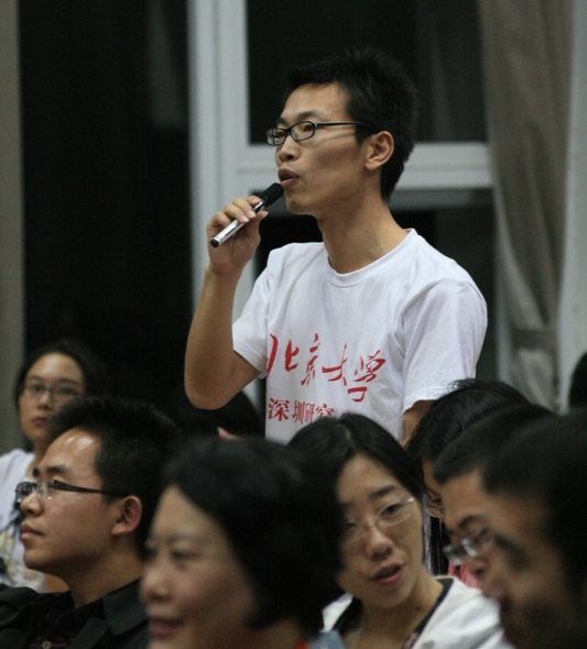 随后,诸如“北大学生出家”、“大学生救落水老人”等现实问题也纷纷进入互动讨论议题。现场气氛随着一个观众吟诵仓央嘉措的诗歌达到高潮。关于人生价值、世界观、宇宙观的思考和探讨远远没有结束。