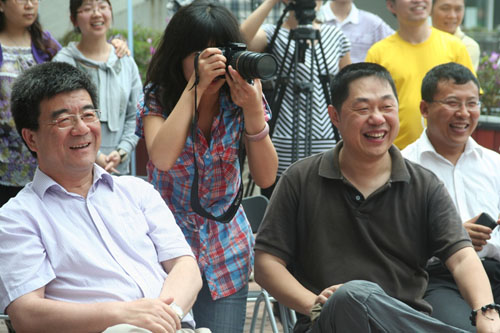 4月21日中午,“让人文飞”院衫设计比赛颁奖仪式在镜湖畔举行,人文社会科学学院的同学身着自己设计的院衫登台走秀,将这项持续了近两个月的院衫设计比赛活动推向高潮。北京大学副校长、北京大学深圳研究生院院长、人文社会科学学院院长海闻教授,人文社科学院副院长于长江教授,深研院学工处处长安晓朋,北京大学新闻与传播学院新闻系主任吕艺教授,深研院两办副主任张凌,北京大学心理学系博士邹智敏,人文学院行政办公室的艾彦、陈娇娇、潘乐文等出席了本次颁奖仪式。