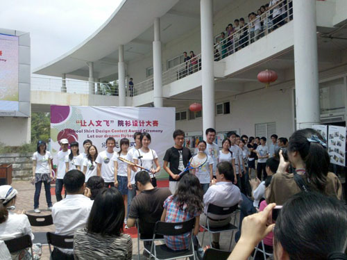 经过激烈角逐,王慈、施拟阳提交的院衫设计方案最终脱颖而出,夺得本次比赛一等奖。该设计使用领带、领结、背带等现代元素,采用后现代的设计风格,并区分男女设计,体现出青春、时尚与个性的结合。代洲、黄英俊和刘晶分获二、三等奖。另外比赛还颁发了包括清新灵动奖、优雅飘逸奖、温馨友爱奖、独立先锋奖在内的多个奖项。
