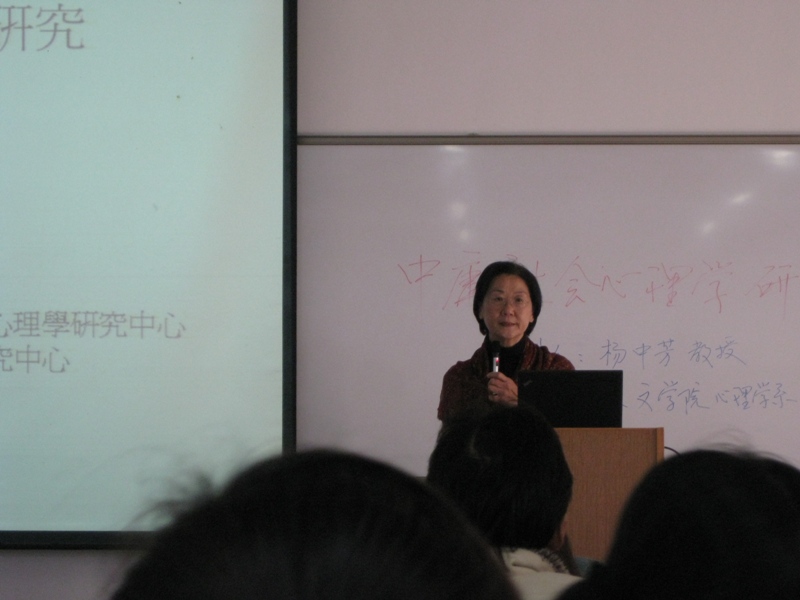 1月9日下午两点在C栋203教室,来自北京大学人格与社会心理研究中心的特聘教授杨中芳老师为我们带来了一场精彩的中庸社会心理学分享。在短短一个多小时的分享里,大家目睹了一位资深心理学家的学者风范。杨老师亲切又自然的演讲带我们亲身体验了一场真正的中庸社会心理学之旅。