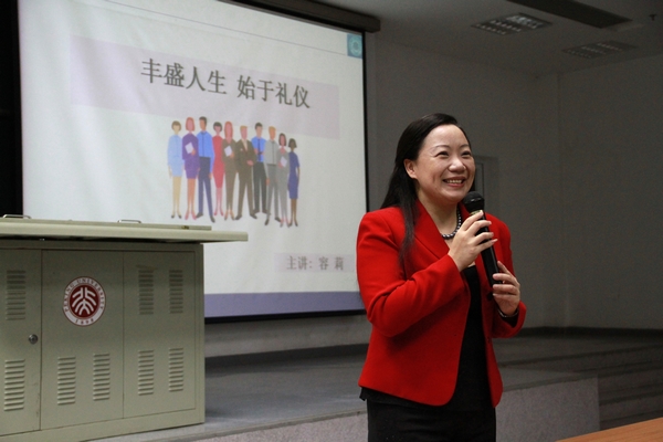 稍后,容教授针对在场听众都是即将步入职场的“准精英”们,从仪容、仪表、仪态、沟通技巧等四个主要方面为大家一一讲解规范的礼仪要求和体现,涉及到的内容更是细微而全面,包括着装、发型、化妆、微笑、眼神、聆听、发言、递接物品等多个角度和细节。观众席上不时传出的阵阵笑声和掌声,让现场的气氛更进一步地活泼又融洽。相信此次培训的成功举办一定会为同学们将来踏入社会和职场奠定坚实的基础!(文史娅萌、图/潘琦)