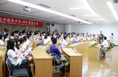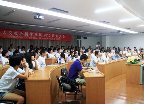 8月27日晚,人文社会科学学院师生汇聚一堂,隆重举行2010级迎新大会。北京大学副校长、深圳研究生院院长、人文社会科学学院院长海闻出席大会,并发表讲话。北京大学心理学系主任周晓林教授、北京大学新闻与传播学院副院长陈刚教授专程从北京赶来与新生见面。此外,心理学专业在深教师及人文社会科学学院行政办公室的全体老师也都出席了大会。迎新大会由人文社会科学学院副院长于长江主持。