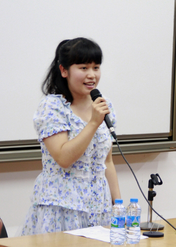 传播学专业2009级学生杨乐作为在校生代表第一个发言,她声情并茂地表达了对南国燕园的感情,并与新生分享了她在社会活动上的相关经验。她说,南燕是一个充满机遇的创新舞台,“我们的创新是南燕的创新,我们的进步也很有可能是南燕的进步”。