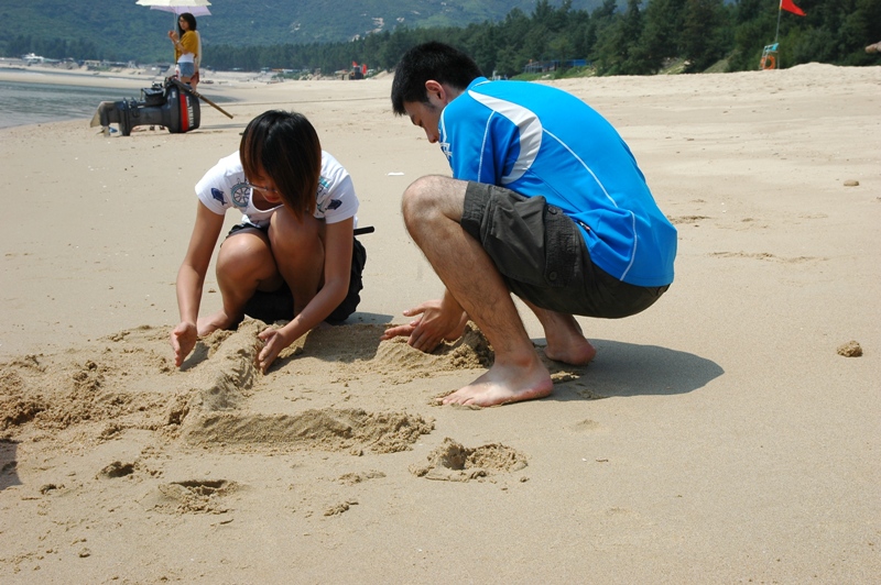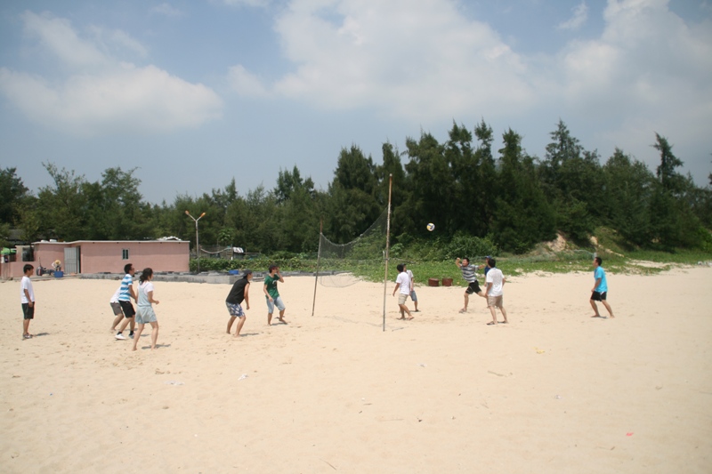 西冲海滩是深圳最大的海滩,也是全国最优美八大海滩之一。其地视野开阔,沙质细软,特别适合沙滩及水上运动。这不,一眨眼工夫,院行政老师潘乐文便带领几大“壮汉”同学玩起沙滩排球来,他们头顶骄阳,脚踩热土,却兴致不减,不时撂几句狠话来瓦解对方意志,如此你来我往,真可谓是戏外有戏,看得树荫下的观众们个个不亦乐乎。