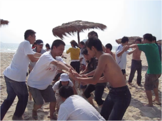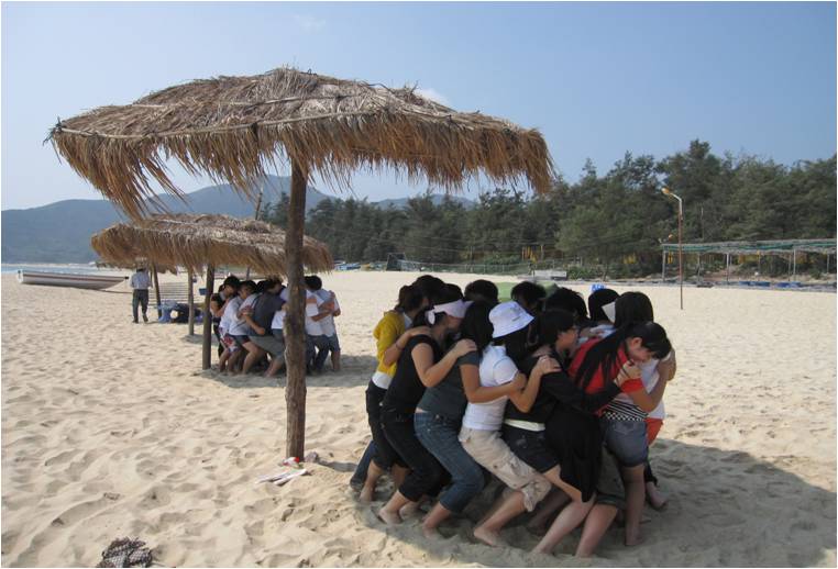早上9点20到达西冲之后,同学经济短暂的休整,随即开始了拓展活动。为准备此次拓展,班级专门策划了拓展方案,设计了松鼠松树、零钱、人椅、坐地起立、虫虫行、化装舞会、芊芊结等妙趣横生的拓展游戏。同学们在充满欢声笑语的各种游戏中尽情欢乐,体验互助合作,增强团体凝聚力。