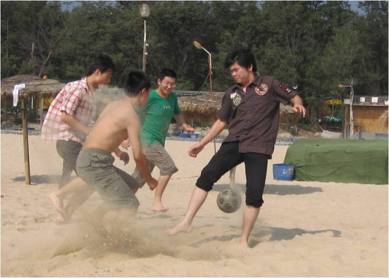 在沙滩排球、足球,游泳、扑克、穿越海岸等一系列活动中,同学们在体力与智力的较量中加深彼此的了解,在辽阔优美的景色中感受生活,畅谈未来。脚踩银沙,沐浴阳光,在海涛的击鼓声中,奋力挥臂,在一波波的波花中感受大海的力量与柔美。