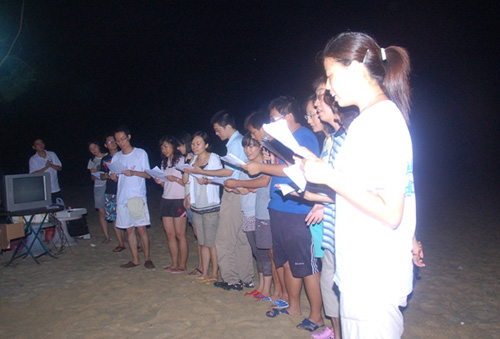晚会结束后,夜已深,同学们仍不愿回帐篷休息,而是聚集在沙滩上,唱歌、打牌、玩游戏、散步聊天,延续着这一天与同窗们的欢乐时光,享受着深夜海边特有的美妙气息。正如海闻校长看望同学们时谆谆教诲的:“读书时与同窗好友的欢乐,是一生中弥足珍贵的宝藏。很多年以后,你们一定都还会想起今天,想起深夜在海滩边欢聚的此刻!”