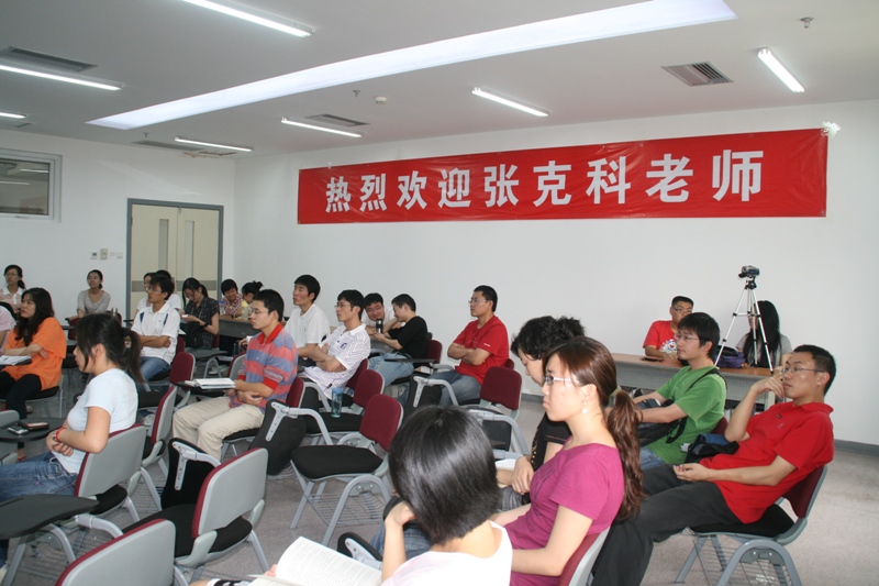 随后,张先生从各个方面介绍了深圳从90年代初以来经历的发展历程。随着上海浦东、天津及中部各省市的崛起,深圳的优势不再明显,如何发掘新的生长点和着力点就成了每一届领导班子最关注的问题。张先生通过一个个鲜活的实例、精彩的比较和翔实的数据带领大家进一步理解了深圳发展的亮点和前景,鼓励大家在读书时多做实事,多长见识。“借学生的身份铺好路,把路铺实了之后就可以登台了。”