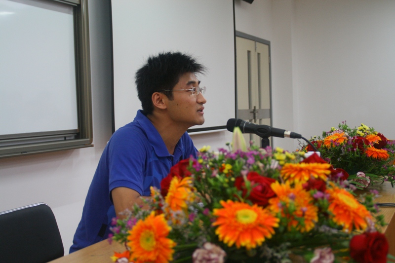 在校生代表08级传播学的秦镜师兄首先发言。他以自己在深圳一年的学习生活经历来告诉大家:选择深圳,并不只是选择了学习的地点,更意味着你选择了一种全新的生活方式。能够在研究生阶段同时体验南北燕园两种不同的生活节奏和文化氛围,这将成为人生中一段宝贵的记忆。他相信一年后,09级的每一位同学都会爱上南燕,爱上深圳。