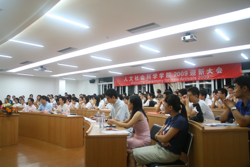 9月3日晚,人文社会科学学院2009级迎新大会在C栋303教室隆重举行。北京大学副校长、深圳研究生院院长海闻教授出席会议并发表了欢迎致辞,北京大学新闻与传播学院常务副院长徐泓教授也专程从北京赶来与新生见面。此外,人文社会科学学院院长助理于长江副教授,深圳研究生院两办主任张国梁老师,心理学在深教师及人文社会科学学院行政办公室老师也都参加了会议。