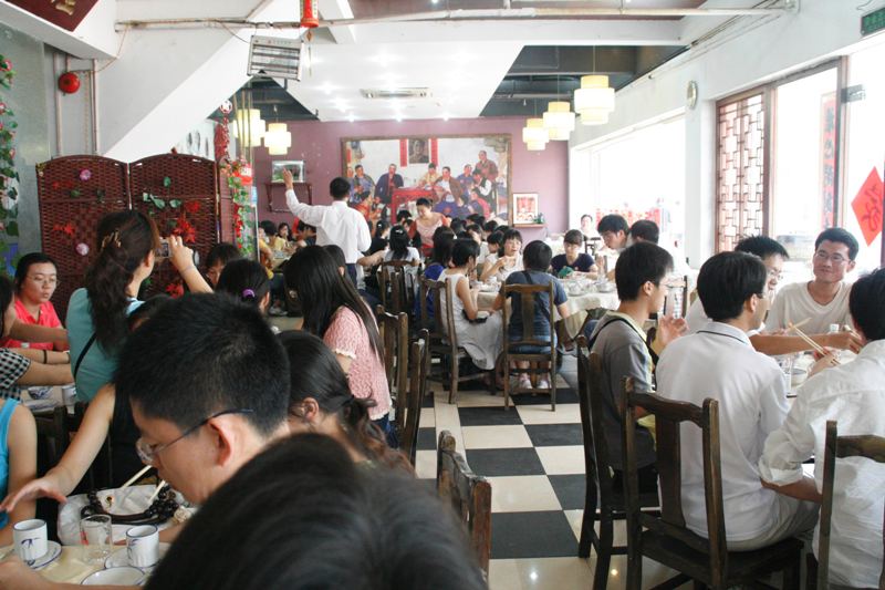 第三站停留的地方是华强北,也是同学们午间聚餐之地。虽然是第一次校外集体活动,但在饭桌上大家就像是老朋友一样,你来我往、觥筹交错,一片欢声笑语。吃完饭后便是同学们的留影时间,各种搞怪的拍照姿势让人忍俊不禁。