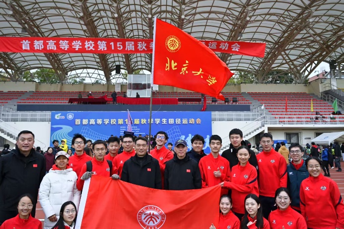 2025年10月,由北京市大学生体育协会主办、北京工业职业技术学院承办的首都高等学校第16届秋季学生田径运动会顺利举办。北大普通生田径代表队派出了11男、9女共20位运动员,与北京15所参与甲组比赛的高校优秀运动员们一较高下。经过3天激烈角逐,北京大学普通生田径代表队在领队王东敏老师和教练员郑重、刘茂辉、邢衍安、李玉新、李贵森、李宁、李敬敬、覃峨等老师的带领下,摘得1金5银5铜,打破6项校纪录(女子5000米,男子110米栏、女子1500米,男子4*100米接力,女子4*100米接力,混合4*400米接力),最终获得男女团体总分第3名、最佳参赛组织奖、男子团体总分第3名、女子团体总分第4名。