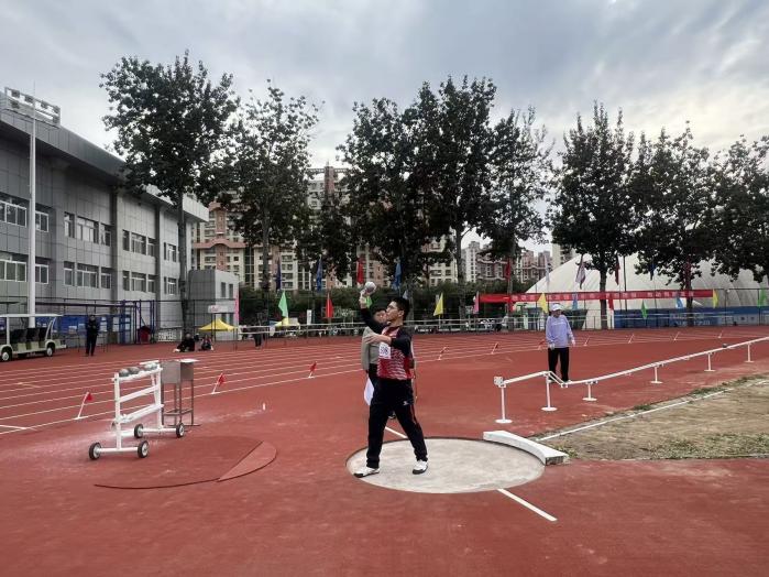 作为北大普通生田径代表队的一员,北京大学深圳研究生院(以下简称“深研院”)城市规划与设计学院学子魏兴鹏,已连续两年参加首高田径系列赛。2025年的赛事中,人文学院覃峨老师为魏兴鹏提供了坚实的专业后盾。赛前,魏兴鹏主动前往校本部,通过跟岗学习高水平运动员的技术,进行了针对性打磨。比赛中,他凭借稳健发挥,一举夺得首都高校男子铅球亚军,为团队荣誉再添助力。