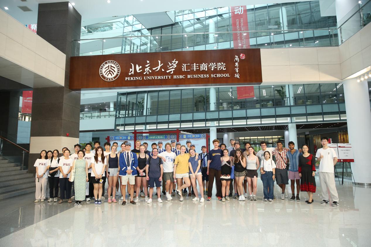 比赛前日,来自剑桥大学、牛津大学、加州大学伯克利分校和悉尼大学的赛艇队员们走进北京大学深圳研究生院,沉浸式参观了汇丰商学院的教学空间及传媒演播室、国际法学院的法律图书馆、6号楼学生活动中心。