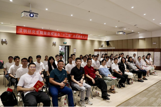 5月22日下午,深圳研究生院举行荣获校运会“十二冠”总结表彰大会。北京大学深圳研究生院党委书记谭文长,党委副书记、纪委书记安晓朋,院长助理、两办(党群办)主任陈娇娇,院长助理、人文建设专班主任仝德,党委委员、人文学院执行院长于长江,学生工作处处长罗碧芳,以及校运会代表队领队、教师运动员、学生运动员、方阵负责人参加会议。会议由深研院研会体育部的徐笑涵同学主持。