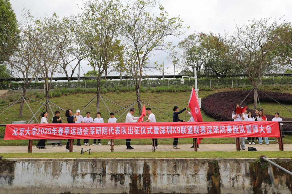 2025年4月22日,北京大学深圳研究生院举行2025年春季运动会深研院代表队出征仪式暨深圳X9高校院所联盟第四届赛艇联赛深研院赛艇队誓师大会。北京大学党委常委、常务副校长、深研院院长张锦,深研院党委书记谭文长,相关单位负责人以及40余名校运会运动员和赛艇队师生队员代表参加活动。