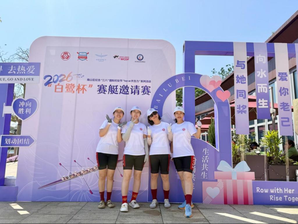 3月14日,2026年“白鹭杯”赛艇邀请赛暨南山区纪念“三八”国际妇女节系列活动在大沙河和鹭赛艇俱乐部圆满落幕。北京大学深圳研究生院蛟龙赛艇队受邀参赛并载誉而归。本次活动北京大学深圳研究生院师生积极参与,以昂扬的斗志和精湛的技艺,在碧波之上生动展现了北大巾帼的卓越风采与奋进力量。